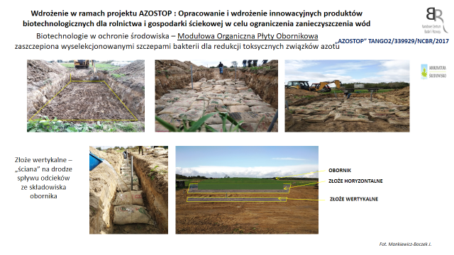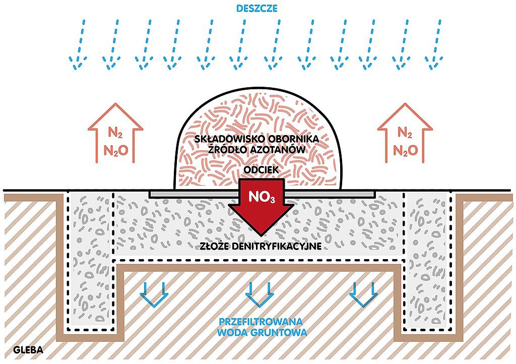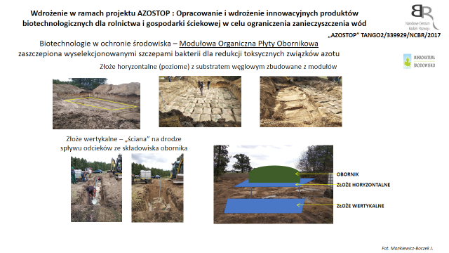 Wyniki uzyskane w projekcie bazowym wykazały, że w gospodarstwach rolno-hodowlanych, w odciekach ze składowisk obornika do wód gruntowych stężenie azotanów może przekraczać nawet 2000 mg dm-3. Stanowi to ogromne skażenie wód gruntowych w najbliższym otoczeniu takich składowisk i nie spełnia wymogów Dyrektywy Azotanowej (91/676/EWG), przyczyniając się do eutrofizacji wód powierzchniowych.